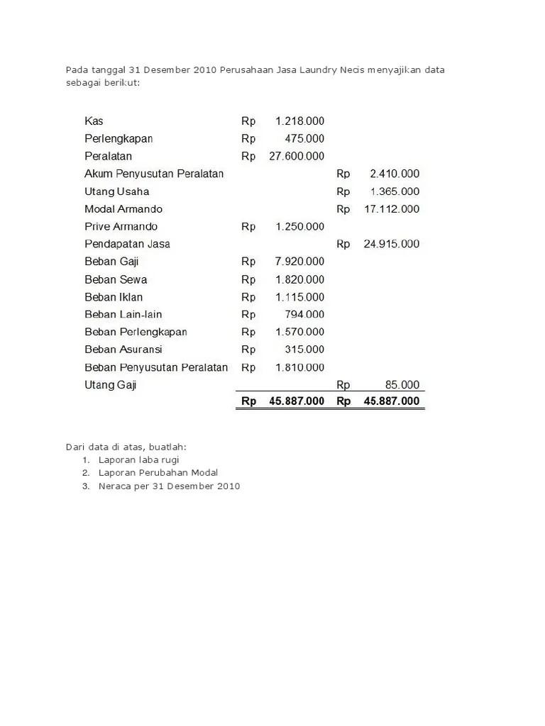 Soal Dan Jawaban Laporan Keuangan / Contoh Soal Sederhana Laporan Keuangan - Contoh pengerjaan soal laporan keuangan perusahaan dagang berikut disajikan contoh soal dan penyelesaiannya mulai dari pencatatan ke dalam jurnal khusus, .